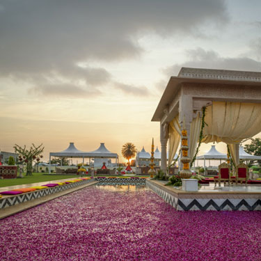 Hazuri Bagh restaurant and resorts is a designer venue suited for great Indian weddings and dining. With two acres of elegant gardens, filled with palm and date trees, outdoor seating and lotus pond courtyard, one can opt to dine at our open air restaurant. It also offers an outdoor venue for various functions.